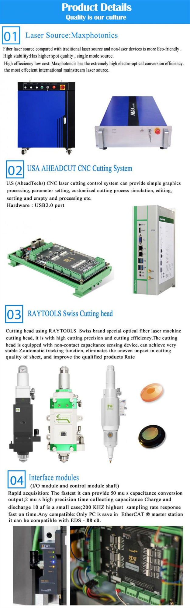 মেশিনটি আমদানিকৃত ফাইবার লেজার, প্রাকৃতিক গ্রানাইট বেস, আমদানি করা সার্ভো মোটর, উচ্চ নির্ভুলতা ক্রস প্ল্যাটফর্ম কাঠামো সহ।